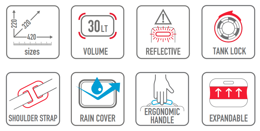Apto para colocación en asiento trasero o colín de motocicletas y scooters.
